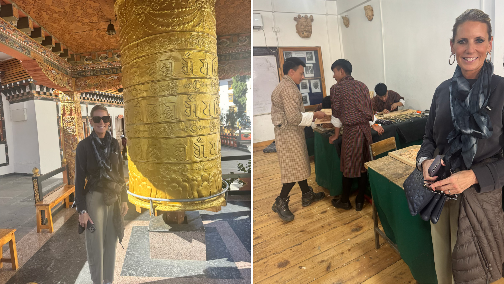 Right: Inside the traditional art school, where the thirteen arts and crafts are preserved: Our visit to the Choki Traditional Art School was a highlight, showcasing the country’s commitment to preserving the Zorig Chusum (Thirteen Arts and Crafts). These schools offer free education, not just to pass on skills like painting, sculpting, and wood carving, but also to instill discipline and cultural identity. It's a key strategy in the government's approach to empower youth and keep them connected to their rich heritage, providing fulfilling employment opportunities at home.